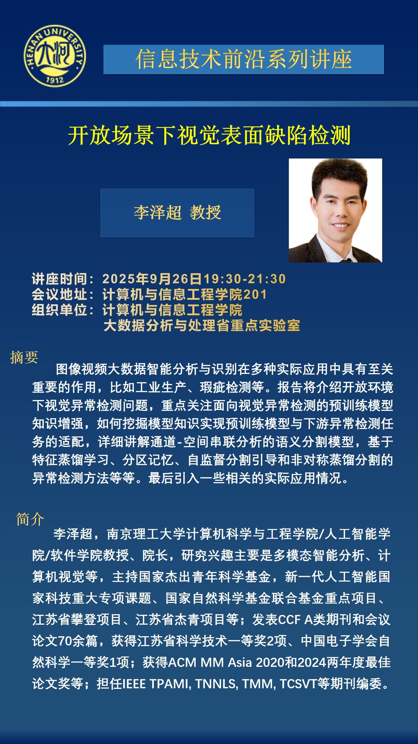 李泽超:开放场景下视觉表面缺陷检测(时间:9月26日)
